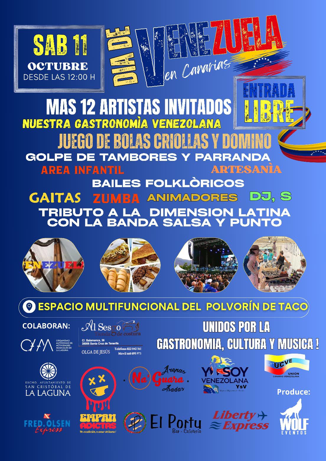 El Polvorín del barrio lagunero de Taco acogerá este sábado, 11 de octubre, la primera edición del Día de Venezuela en Canarias con el objetivo de ensalzar la cultura del país americano y fortalecer el vínculo con la sociedad del archipiélago. Esta celebración quiere aunar lo mejor de la cultura, gastronomía y música de Venezuela con artistas latinos residentes en las islas, comida típica, artesanía y actividades solidarias.