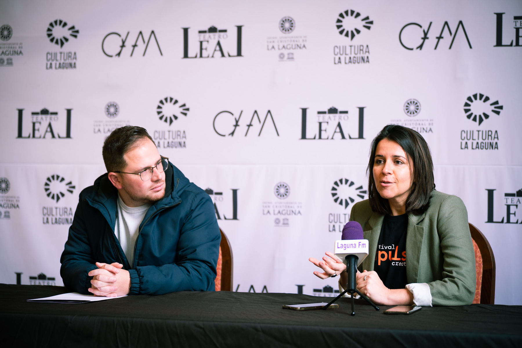 La muestra ha sido presentada por el concejal de Cultura de La Laguna y presidente del Organismo Autónomo de Actividades Musicales (OAAM), Adrián del Castillo y la actriz y dramaturga Bibiana Monje, directora del Festival. En el acto también estuvieron presentes el concejal de Juventud de La Orotava, José Darío Afonso, y la coordinadora artística y de gestión del Espacio La Granja, Sulay Curbelo.