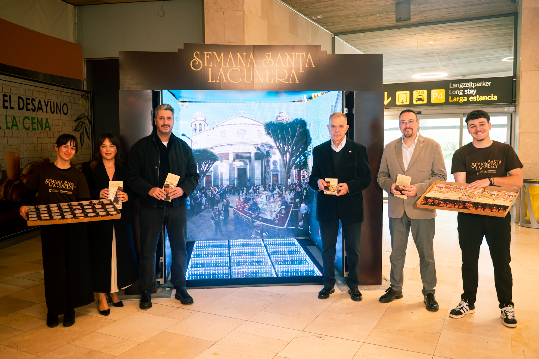 Bajo el lema ‘Tu Semana Santa comienza aquí’, la acción sitúa la tradición lagunera en un punto clave de contacto con el visitante, aprovechando un espacio de máxima afluencia para generar un impacto directo y emocional en quienes llegan a Tenerife.