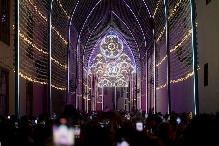 En lo que se refiere al encendido de luces, ya se han establecido prohibiciones de estacionamiento en el entorno de la plaza del Adelantado y en el lateral derecho ubicado entre las calles Magistrado Campo Llarena y José Clavijo y Fajardo (a ambos lados), salvo taxis y vehículos autorizados. También se han aplicado restricciones de circulación en esta zona indicada, pudiéndose ampliar dichos cortes de tráfico, en función de la afluencia de personas, en la calle Santo Domingo con desvíos por las calles Molinos de Agua, Padre Herrera y Quinteras.