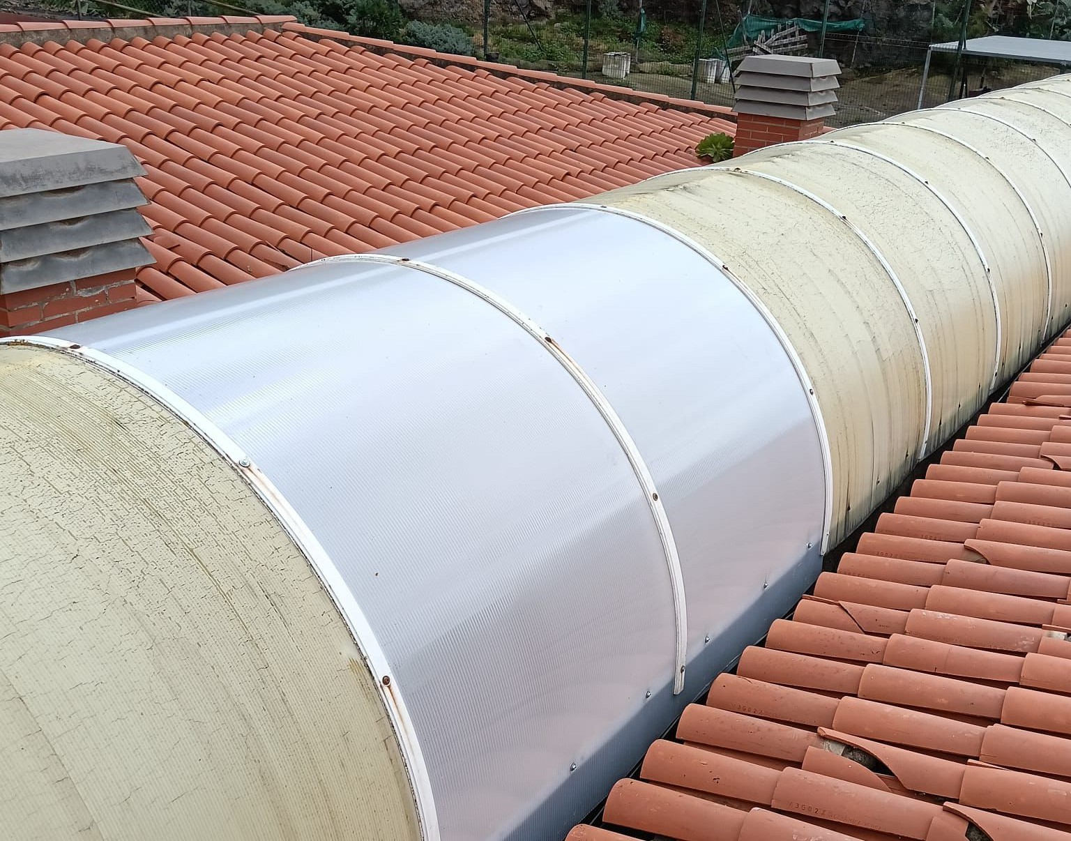 En este sentido, ya se han ejecutado los trabajos de reposición del techo afectado en carpintería de aluminio, así como el refuerzo y aseguramiento de las zonas de la cumbrera que se habían levantado, evitando posibles filtraciones de aire que pudieran agravar los daños.